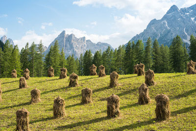 Oltre il fresco ruscello di Sesto, sotto la Cima Scarperi, si trova un prato con alti e maestosi larici, che raggiungono anche i 40 metri di altezza, con radici profonde e forti e un legno ricco di resina. In autunno il paesaggio è da fiaba, grazie ai colori di questi alberi che presentano tutte le sfumature dal giallo al rosso, dall’oro al bronzo. Tra i larici si trovano i vecchi fienili di legno dove i contadini conservano il fieno profumato. Una pennellata di lilla qua e là completa la scena: sono i crochi autunnali che fioriscono col finire dell’estate ricoprendo i prati della Val Fiscalina.
