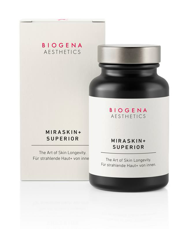 Per preservare luminosità ed elasticità, è essenziale fornire alla cute il giusto supporto dall’interno, proteggendola dagli agenti esterni e stimolando i suoi naturali meccanismi di rigenerazione. Per questo BIOGENA, azienda specializzata nello sviluppo di integratori di micronutrienti di alta qualità per la cura del corpo a 360 gradi, ha dato vita a BIOGENA AESTHETICS MiraSkin+ Superior: una nuova formulazione, alleata della longevità della pelle, creata con un mix di ingredienti accuratamente selezionati e altamente biodisponibili la cui efficacia è stata dimostrata da approfondite ricerche scientifiche.