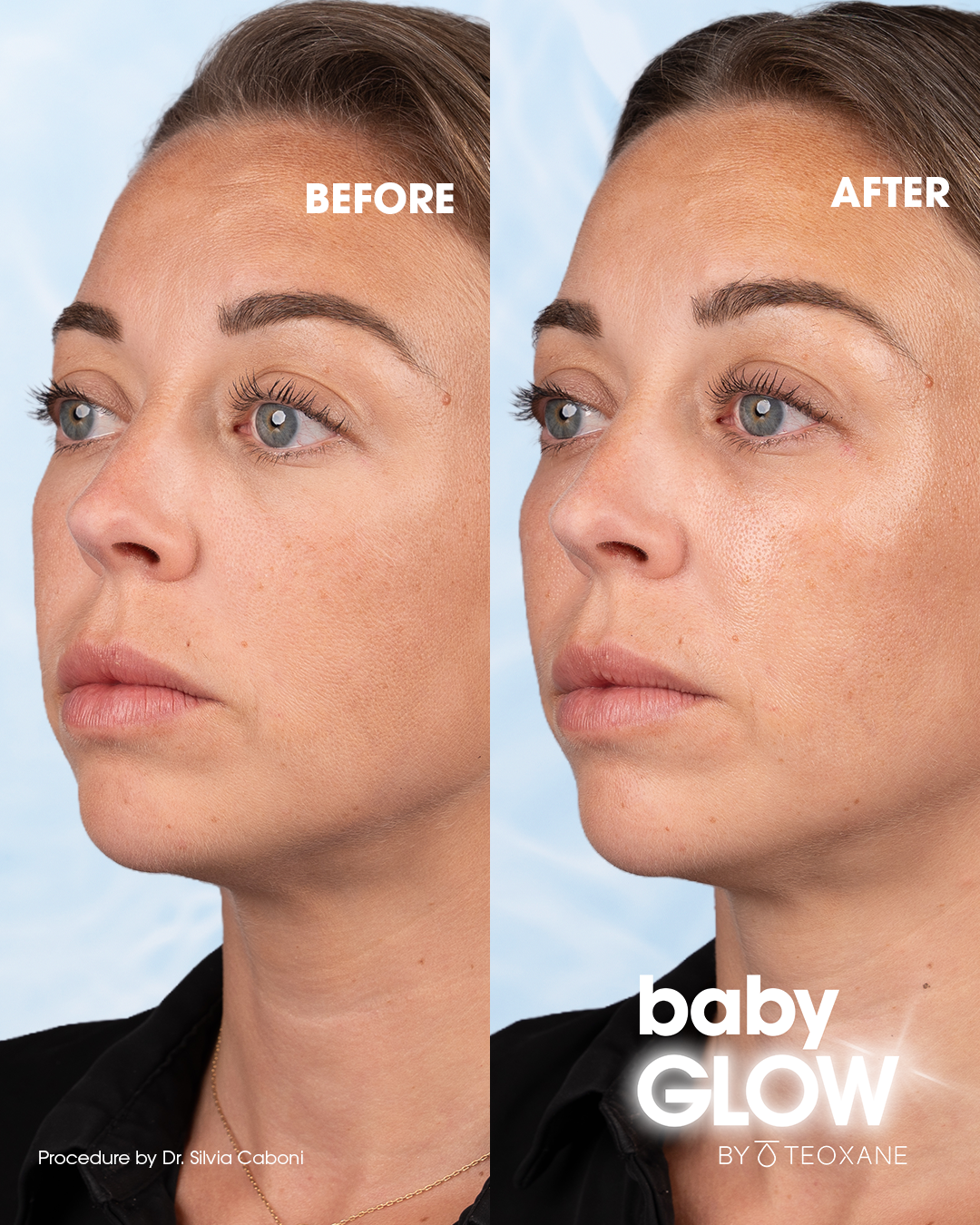 Nasce da questo approccio babyGLOW, trattamento con uno skinbooster sviluppato da Teoxane, pensato per donare al viso un aspetto fresco, uniforme e naturalmente radioso “effetto glow”.