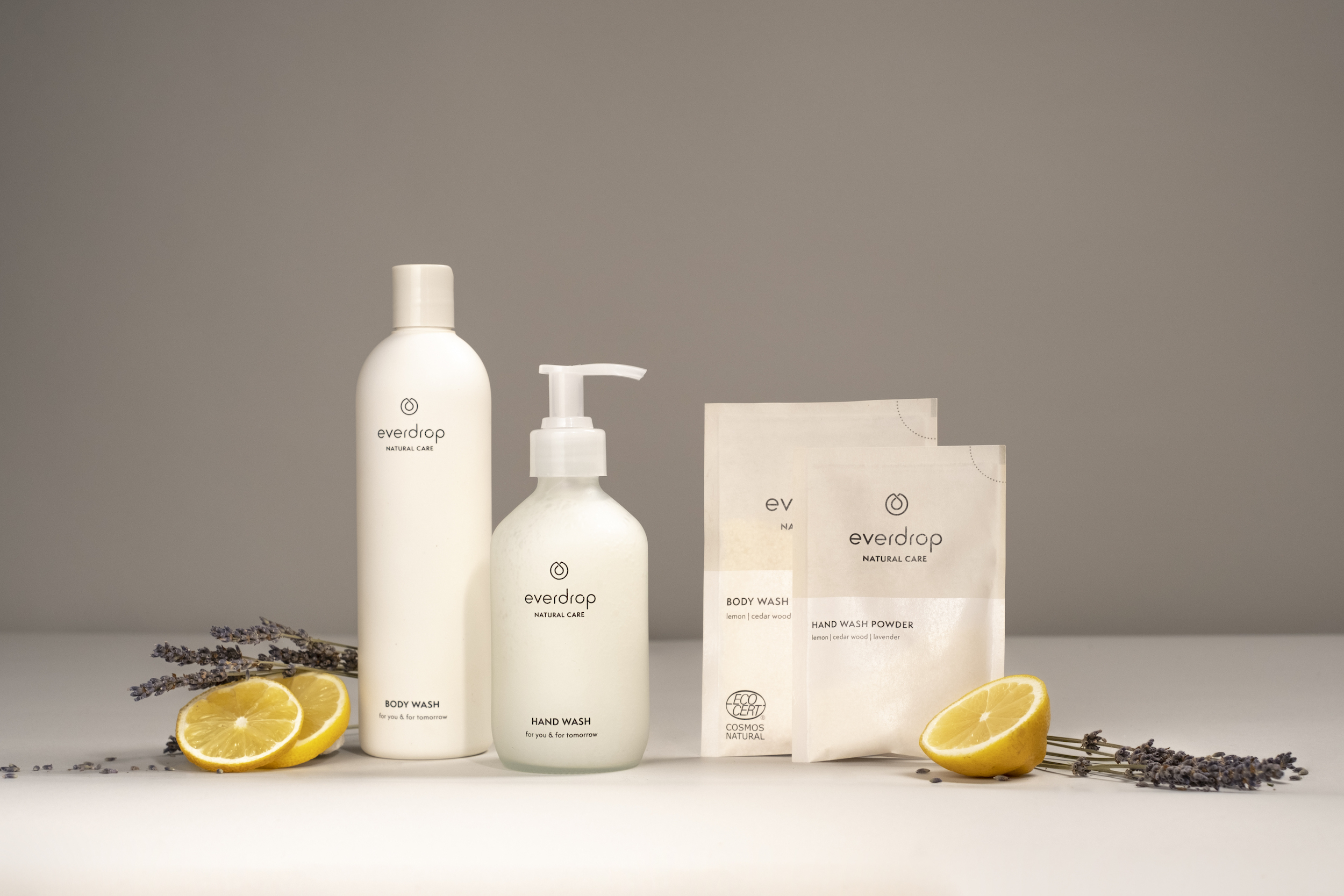 everdrop presenta la propria linea di cosmesi naturale ricaricabile NATURAL CARE. La linea everdrop NATURAL CARE si compone di sapone liquido per le mani e bagnoschiuma, entrambi basati su un innovativo formato in polvere, da trasformare in gel direttamente a casa: i flaconi possono quindi essere riutilizzati con nuove ricariche in bustina, riducendo l’utilizzo di plastica monouso e le emissioni di CO2 dovute al trasporto.