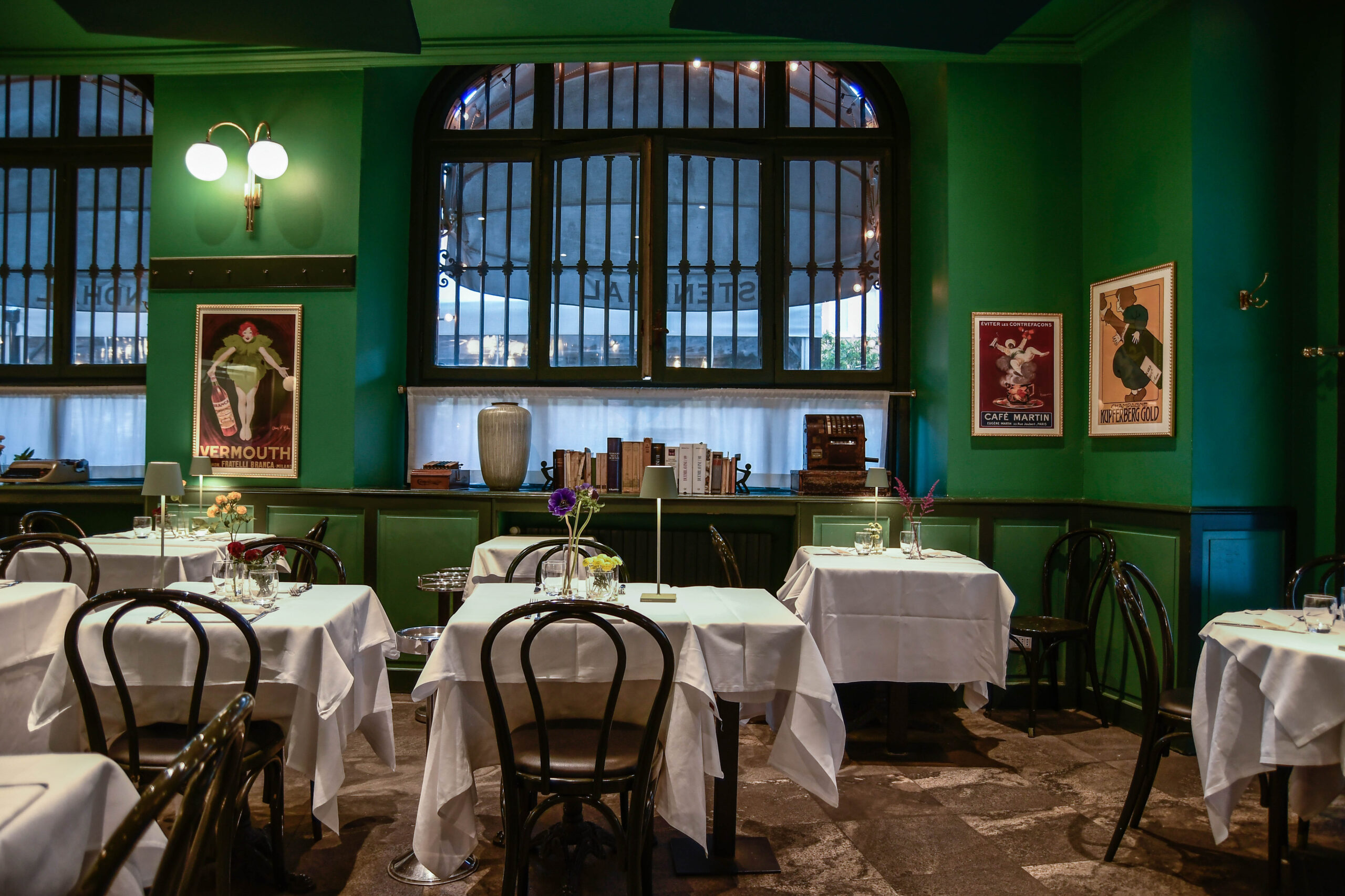 Il locale si presenta all’esterno con tre ampie vetrate che lasciano scorgere il carattere di questo luogo, in cui il colore verde è predominante. Il ristorante è strutturato da due ampie sale interne, ciascuna di una ventina di coperti circa, in cui spiccano alcuni oggetti d’epoca che sottolineano la storicità del locale e i richiami alla grande Milano. Nella sala principale il bancone bar si snoda lungo tutto il lato sinistro, mentre all’esterno troviamo uno spazio che viene utilizzato sia nella bella stagione, per godere del clima durante un pranzo o una cena all’aperto, sia nei periodi invernali trasformandosi nell’elegante Giardino d’inverno. Una serra, particolarità esclusiva di Stendhal, con un’atmosfera sofisticata, disponibile anche su prenotazione per eventi privati.