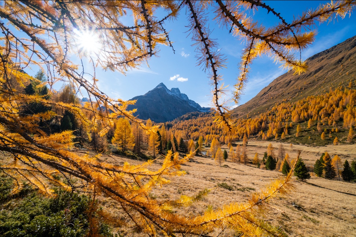 Vera terapia cromoterapica, il foliage è una magia che nei dintorni di Bormio offre innumerevoli spunti escursionistici. Lungo le passeggiate nella Valle di Fraele, ad esempio, si resta affascinati dai contrasti tra il color zaffiro dei Laghi di Cancano e il rosso dei Larici. In quest’area la conformazione è totalmente pianeggiante, così lo spettacolo è accessibile a tutti, in bici o a piedi. La Val Viola, invece, sorprende per il suo silenzio avvolgente. Si tratta di una zona protetta in cui il traffico a motore è regolamentato. Passata la stagione estiva, infatti, la valle torna a risuonare esclusivamente dei suoni della natura.