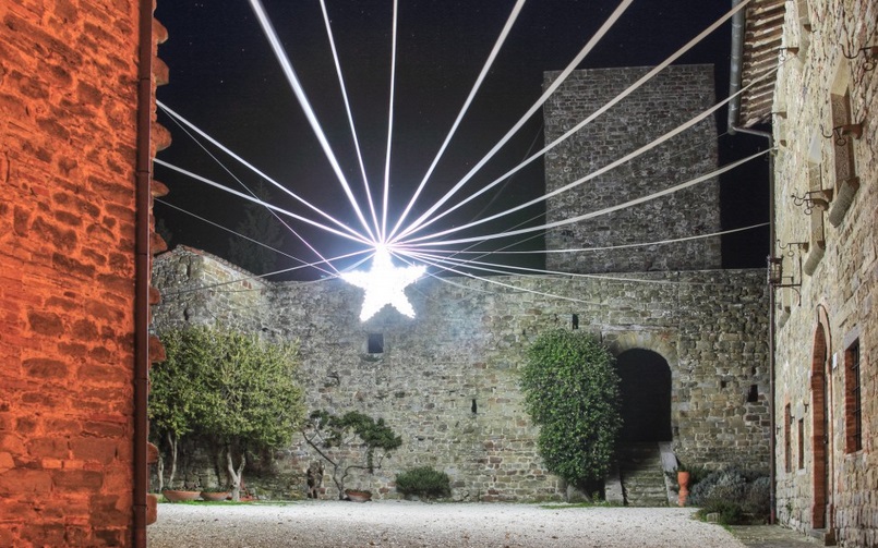 Dal colle che sovrasta la fattoria della tenuta del maestoso Castello di Petroia (Perugia) si può osservare il famoso albero di Natale di Gubbio, il più grande del mondo, uno spettacolo di luci colora...
