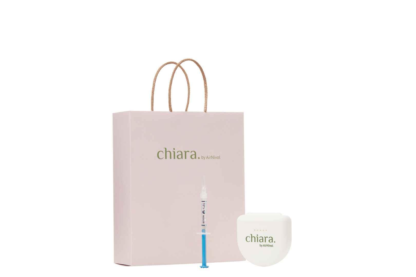 Il kit di chiara. by AirNivol è il primo trattamento sbiancante domiciliare, completo di tutto il necessario per uno sbiancamento veloce ed efficace in autonomia. Al suo interno si trovano mascherine ...