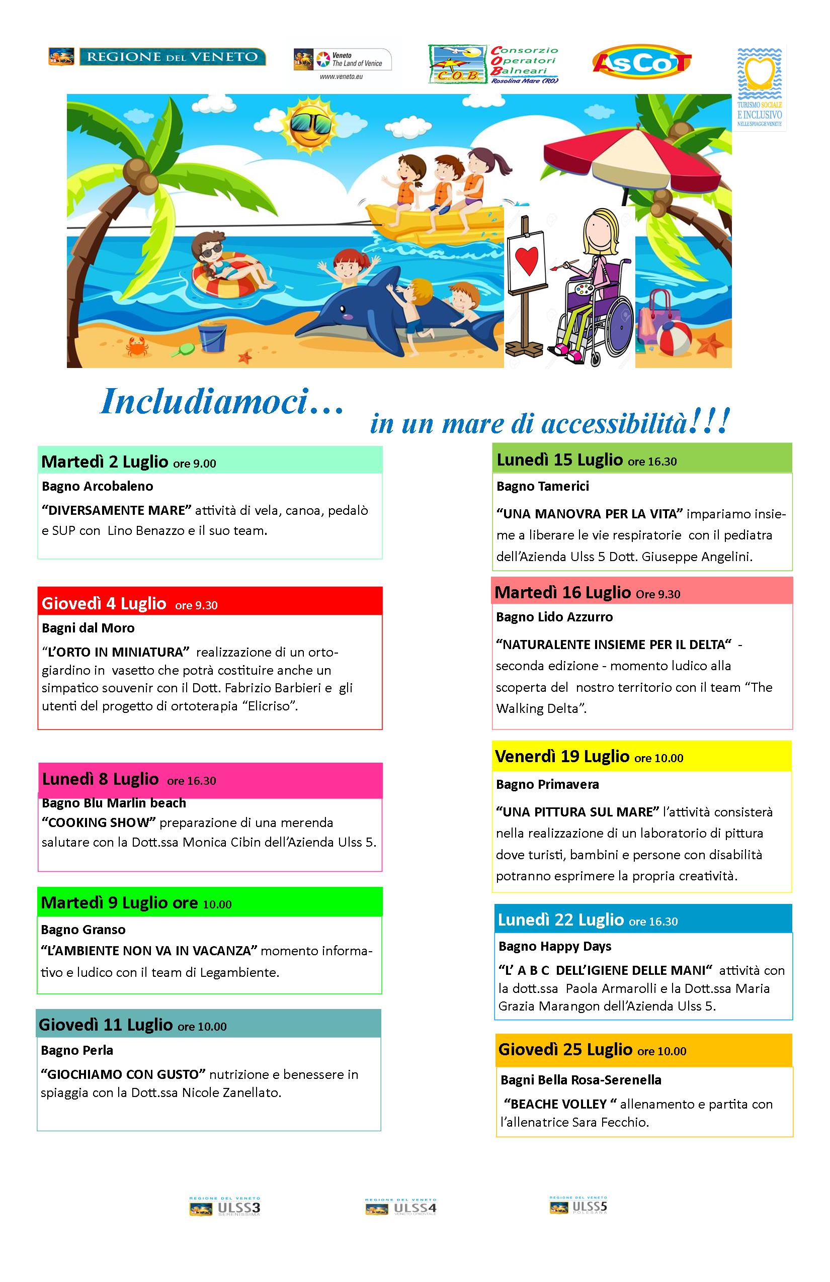 Nel mese di luglio sono previste giornate all’insegna dello sport, attività ludico – ricreative esperienze di scoperta del territorio e momenti d’informazione a carattere sanitario rivolti ai turisti con disabilità e alle loro famiglie, Il tutto nella promozione del nostro litorale.