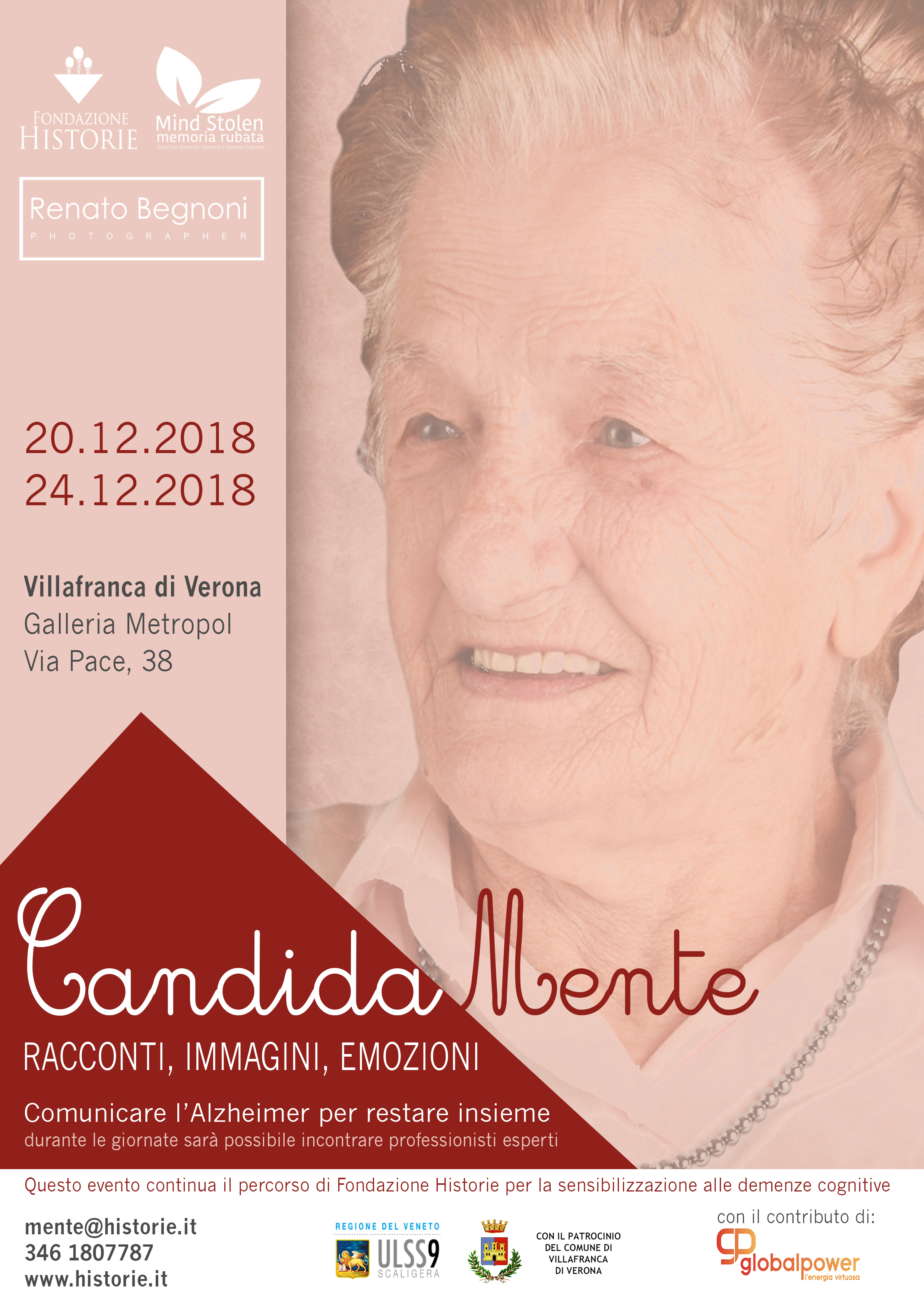 Fondazione Historie presenta il Servizio dedicato alle demenze, ma lo fa in modo diverso, con una mostra fotografica dedicata alla persone. La mostra rimane aperta dal 20 al 24 dicembre ed è allestita...